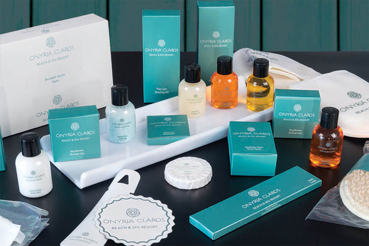 Set içerisinde; kutu mendil, hijyen poşeti, bardak poşeti, çamaşır poşeti, bardak altlığı, bardak kapağı, pleksiglas buklet tepsisi, pile sargılı sabun, kurşun kalem, makyaj pamuğu, kulak temizleme pamuğu, duş bonesi, dikiş seti, tırnak törpüsü, diş seti, traş seti, terlik, ayakkabı cila süngeri, tarak, şampuan, saç kremi, duş jeli, banyo köpüğü ve vücut losyonu bulunmaktadır.